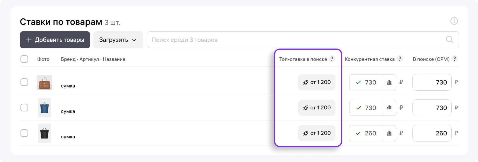Wildberries предоставляет продавцам информацию о топ-ставках в интерфейсе личного кабинета: