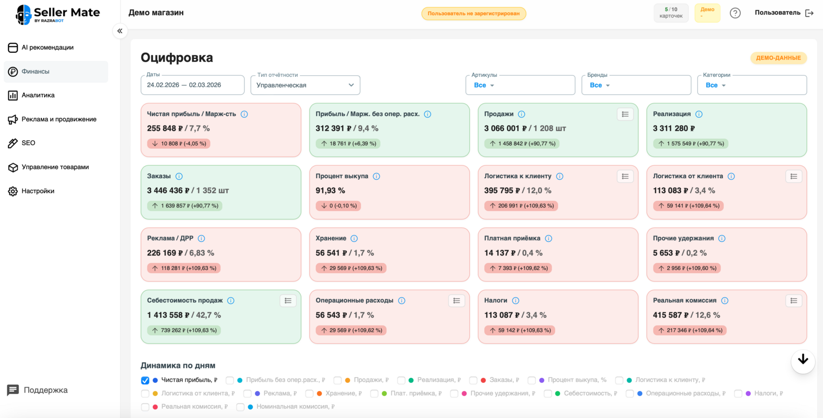 Seller Mate построен именно как инструмент управленческих решений: не “данные ради данных”, а выводы и действия – что поправить и где вы теряете деньги.