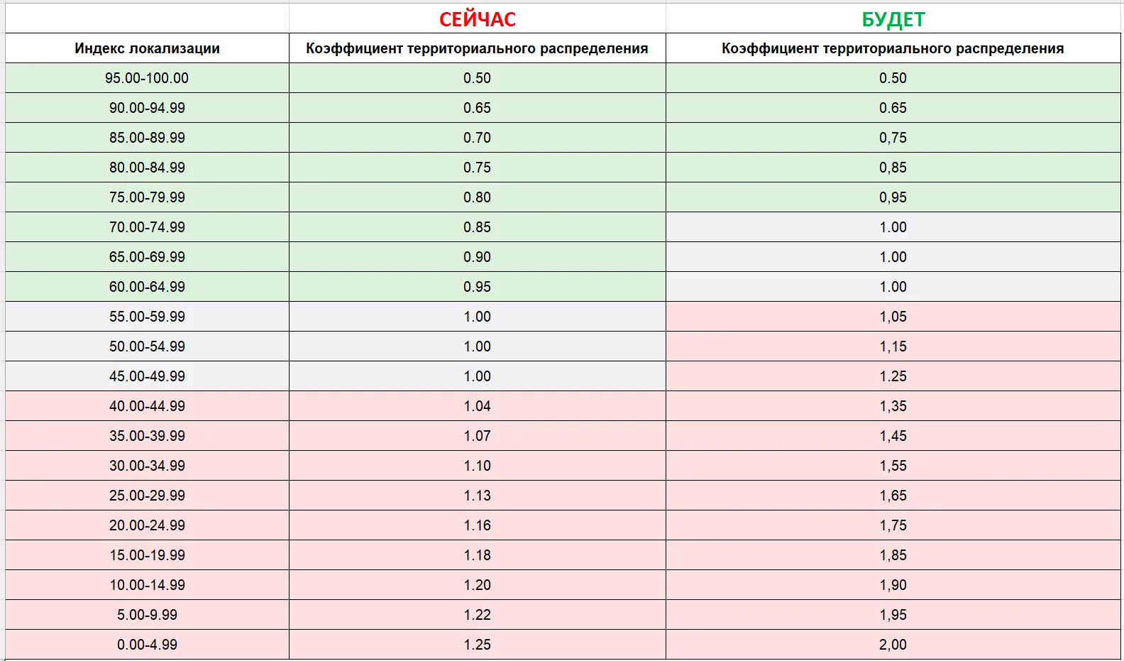- Раньше локализация 80–84% = КТР 0,75,