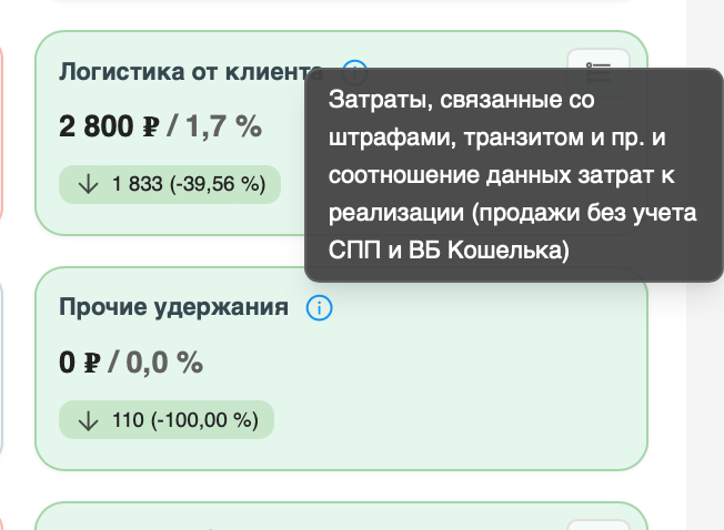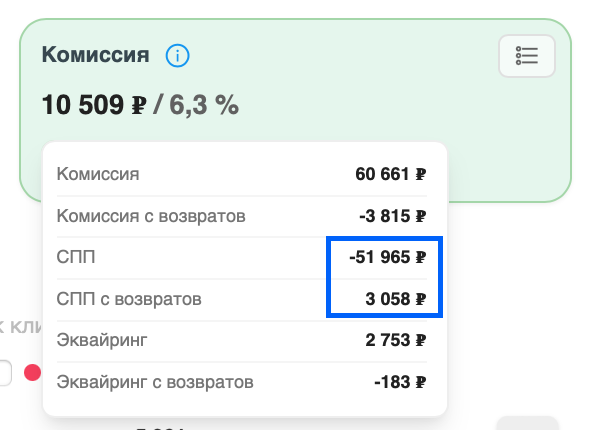 Полученные значения сравните со строкой "СПП" и "СПП с возвратов" в детализации виджета "Комиссия".