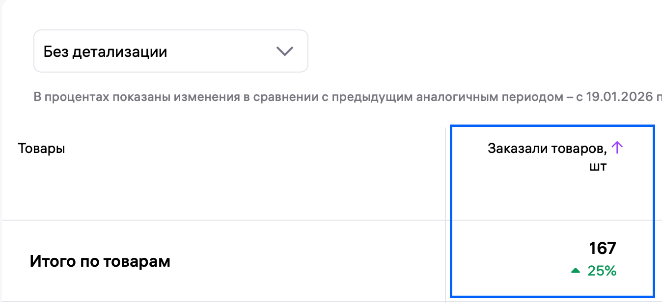 Сравниваем значения из столбца “Заказали товаров в шт” с виджетом “Заказы”