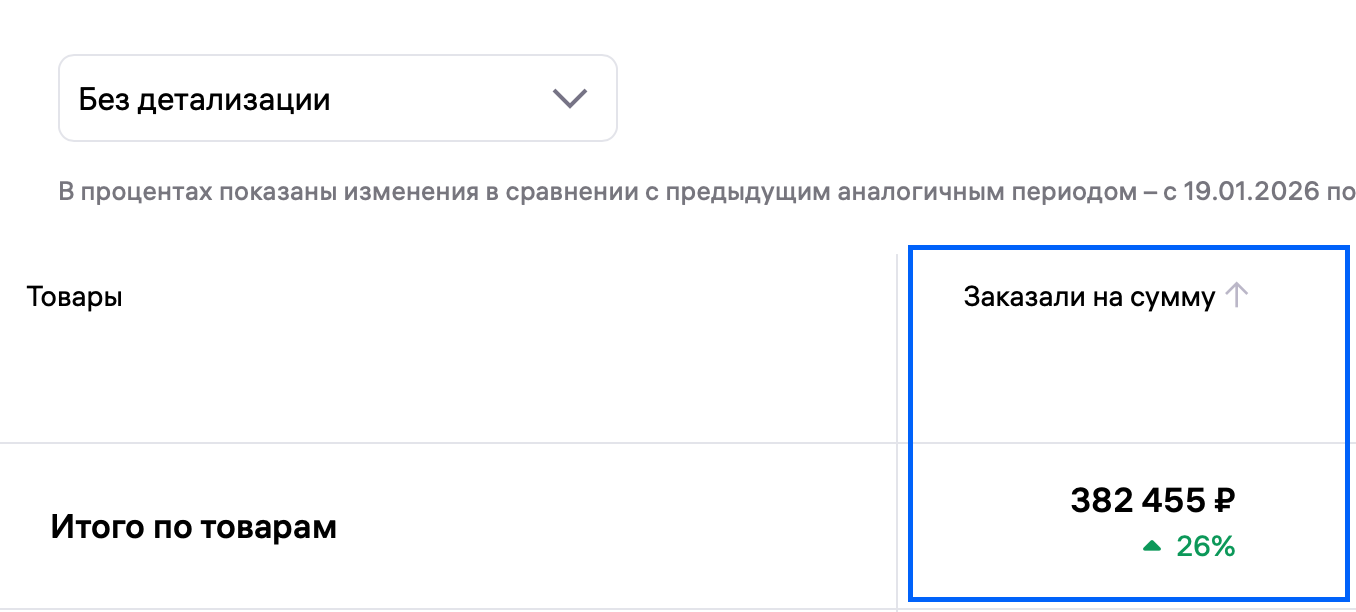 Сравниваем значения из столбца “Заказали на сумму” с виджетом “Заказы”