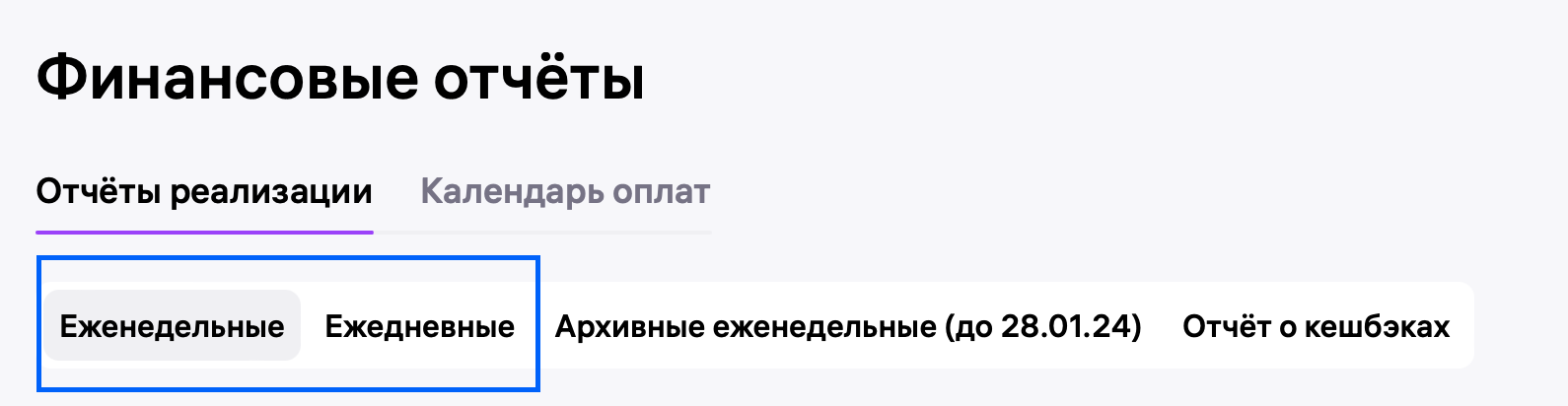 Откройте раздел «Финансовые отчеты» и выберите нужный период. За каждый день или неделю формируется два отчета – для сверки их нужно сложить между собой.